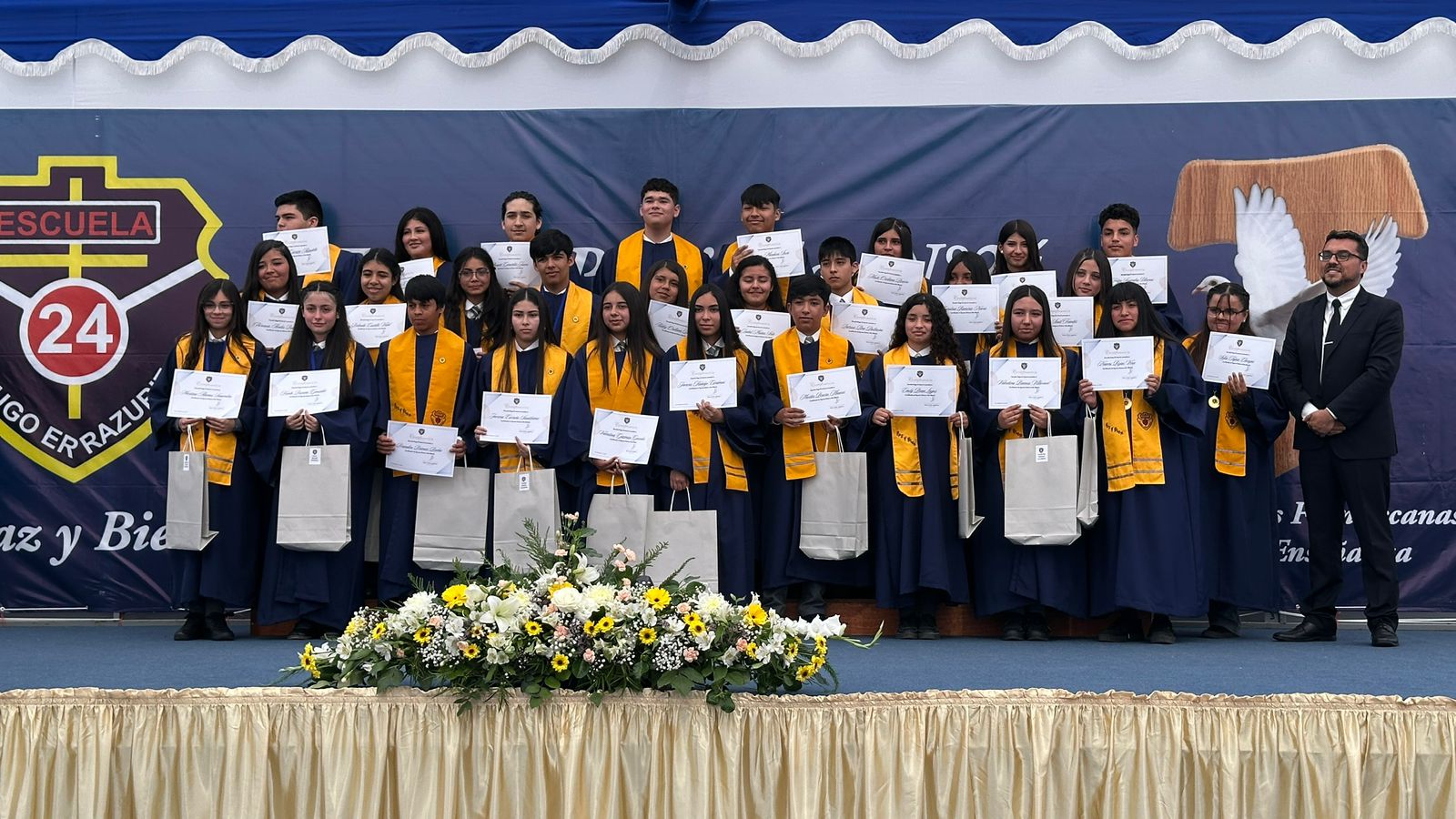 El pasado viernes 5 de diciembre, nuestra Escuela Hugo Errázuriz realizó la Ceremonia de Certificación de los Octavos Básicos, instancia significativa en la que los estudiantes recibieron su certificado de promoción a la Enseñanza Media, marcando el cierre de una importante etapa de su vida escolar.