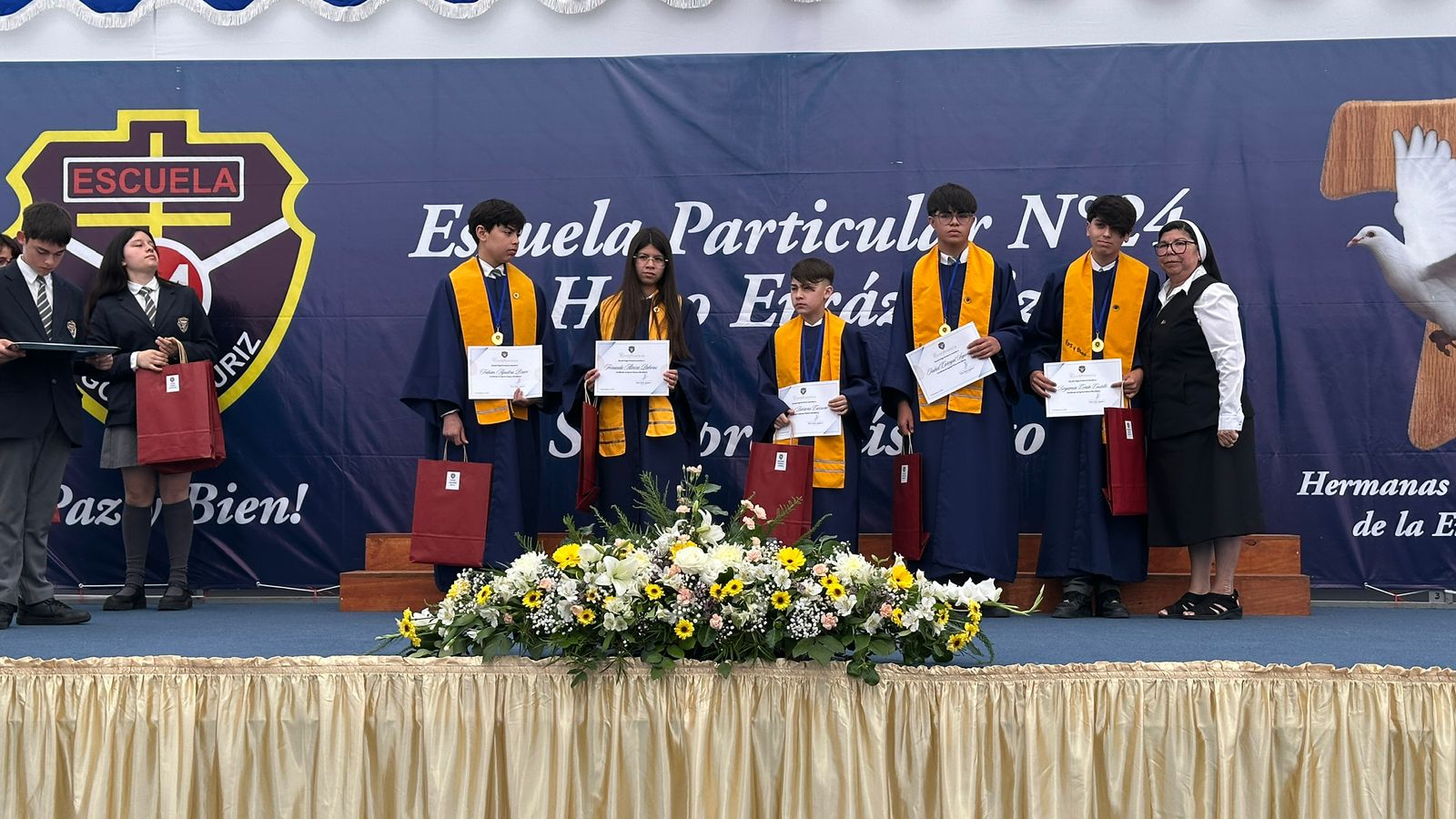Durante la ceremonia se llevaron a cabo diversas premiaciones y reconocimientos, destacando a los estudiantes con mejores promedios académicos, al mejor compañero o compañera, a quienes cursaron toda su enseñanza básica en nuestra escuela, y a los apoderados destacados, valorando su compromiso y acompañamiento a lo largo de estos años.